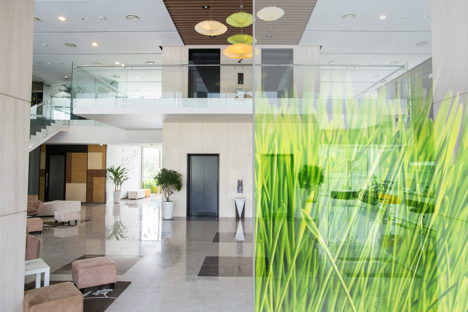 Bedruckte Sandstrahlfolie für die Veredelung von Glasflächen. Kann auch noch Konturgeschnitten werden um besondere Effekte zu erzielen. Auf Wunsch mit mattem Schutzlaminat für erhöhte Kratz- und UV-Beständigkeit.