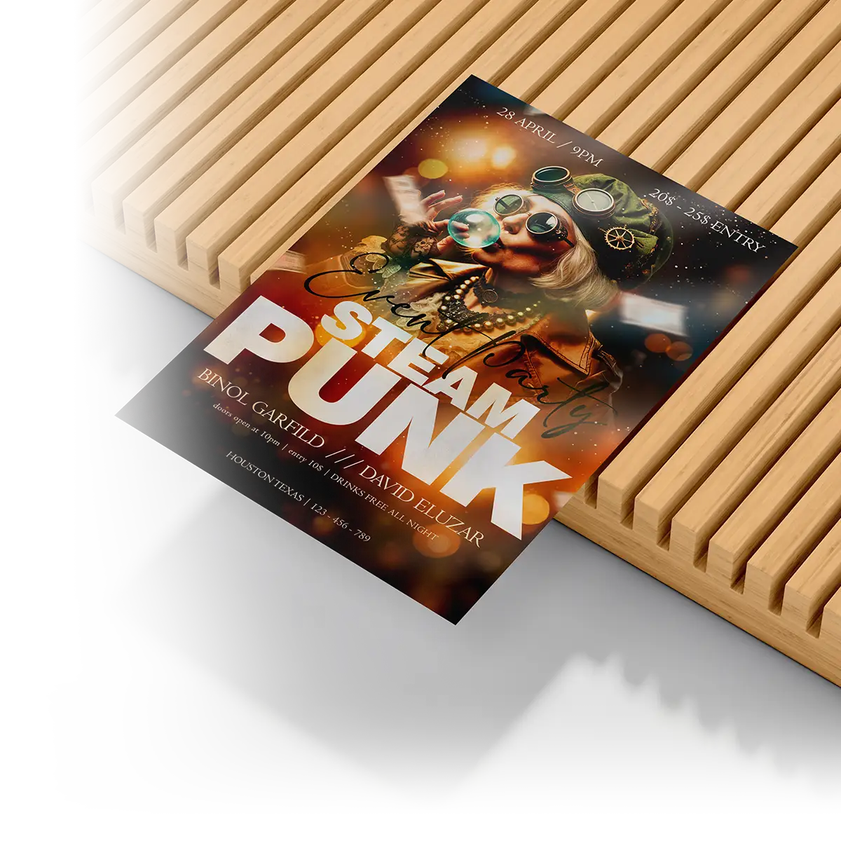 Format: 10,5x14,8cm Wahlweise in den Papierstärken 135g oder 250g Wahlweise glänzendes oder mattes Papier 4/4 farbiger Offsetdruck Die genauen Anforderungen entnehmen Sie bitte der Druckvorlage.Download Druckvorlage